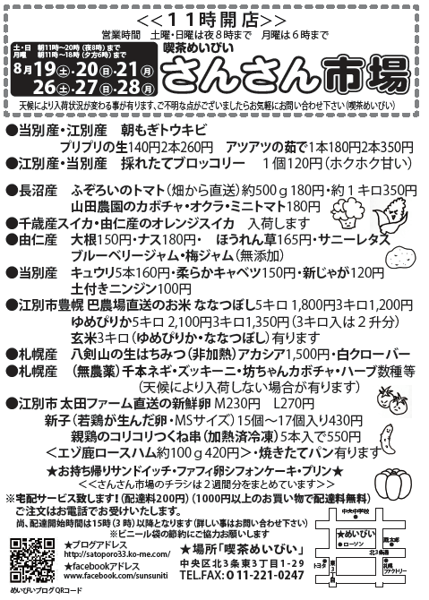 明日からのさんさん市場のチラシです