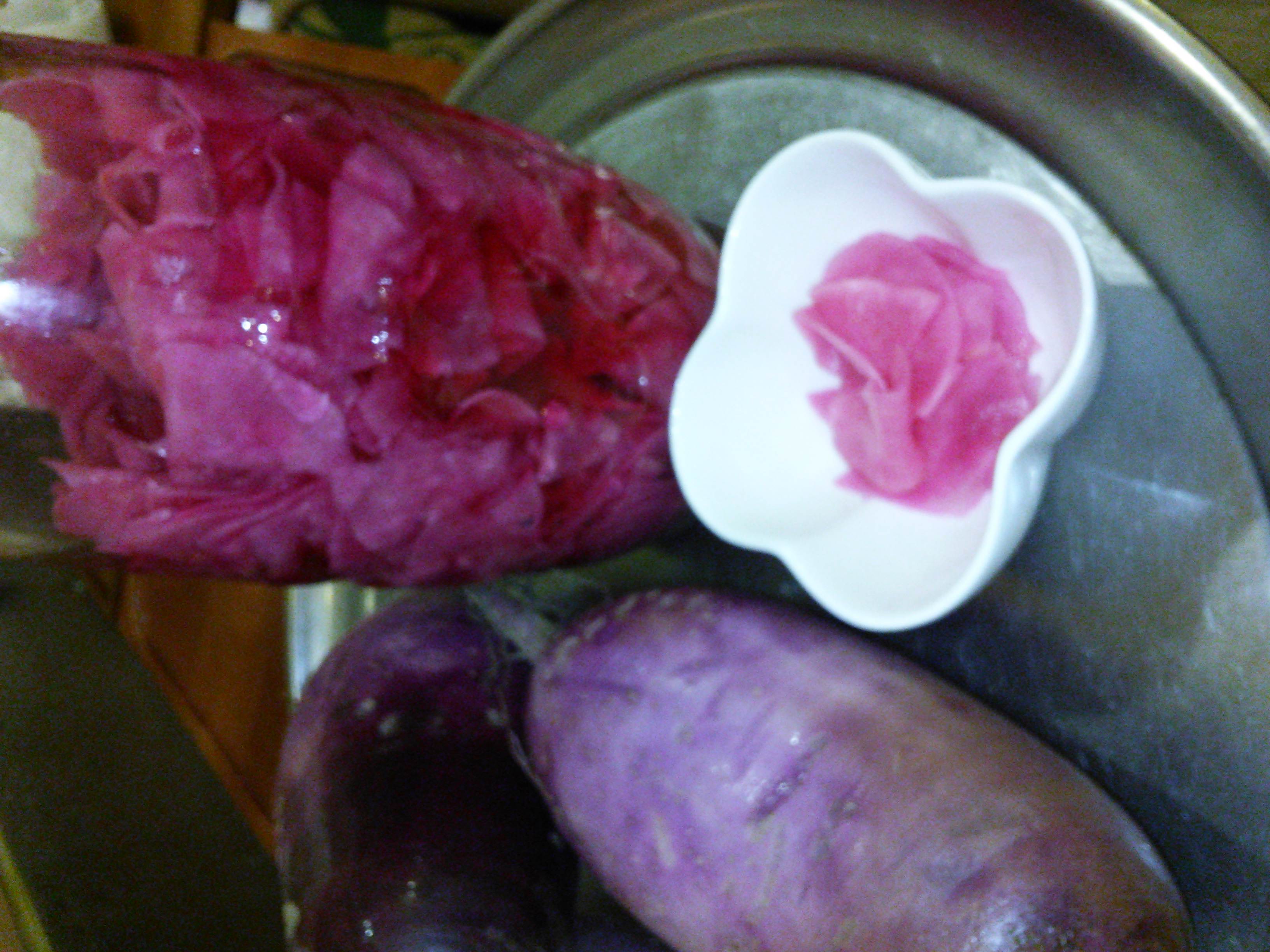 甘酢漬けにすると鮮やかな色になります。