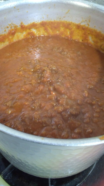 平取産の完熟トマトと炒めた香味野菜に牛肉タップリ入れて作っています。