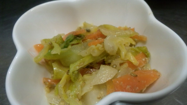 春キャベツとニンジンのゴマ酢あえ