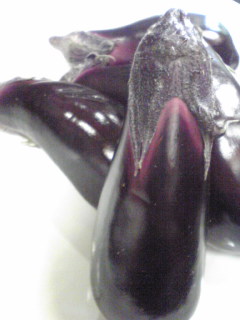 一般に使われている中長なすでヘタも紫色で身の境目の色もなす紺と言われる紫色なのが新鮮です。