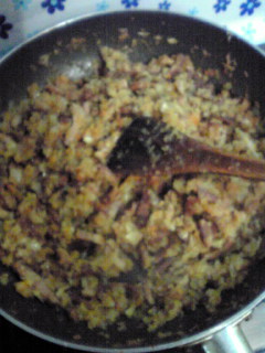 じっくり炒めたベーコンと玉ねぎ・ニンジンが入ってます。