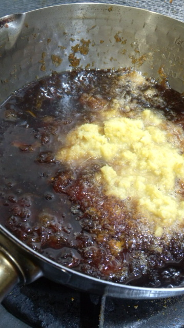 タレにはタップリの玉ねぎとしょうがのすりおろしが入ってます。玉ねぎは熱を加えると甘くなるので甘みを付けるためと、肉が柔らかくなるので入れて仕上げています(^-^)v