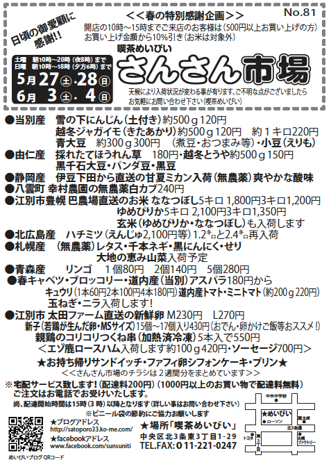 5月13日と14日、20日と21日のさんさん市場のチラシです